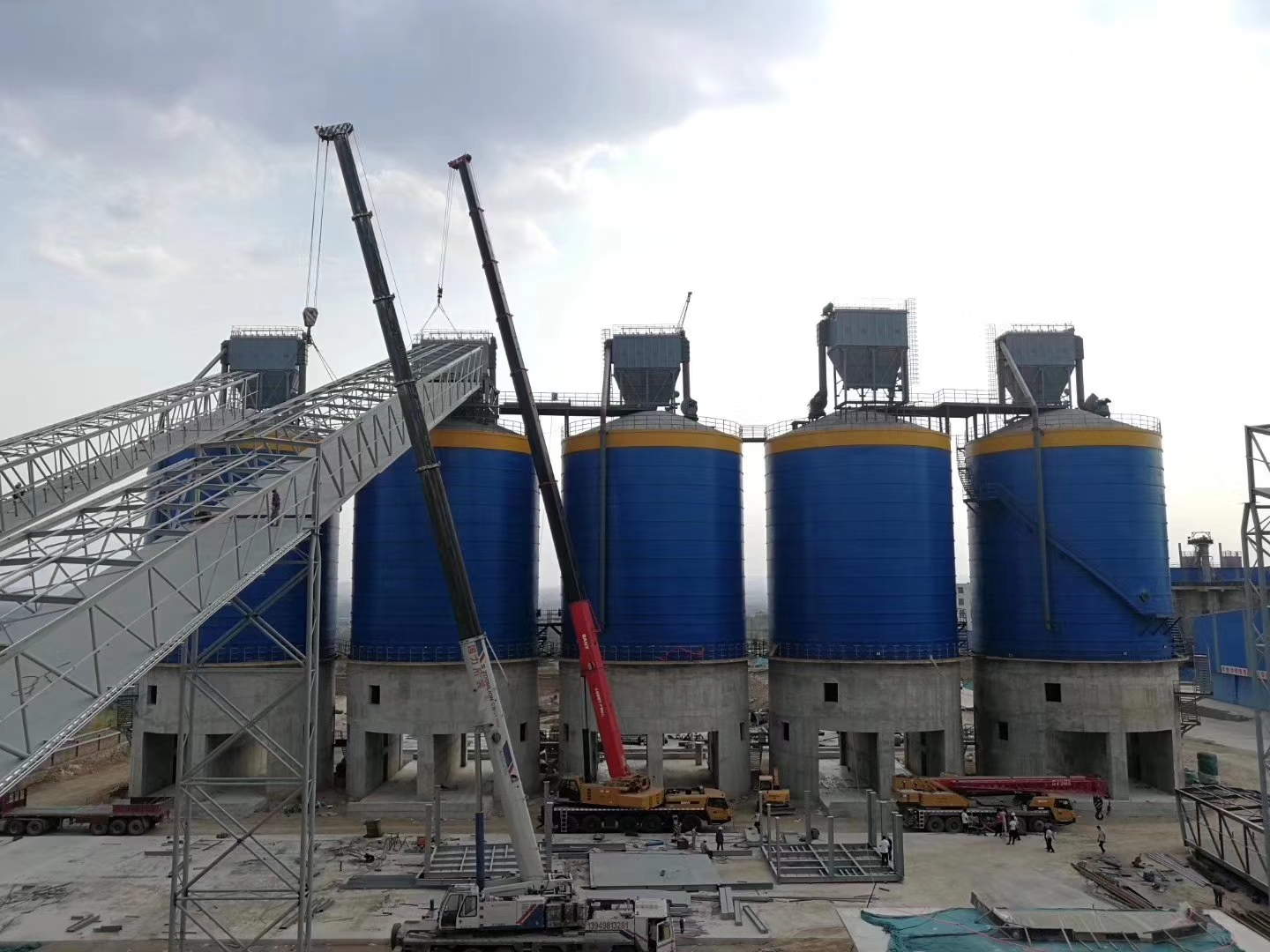 能减轻动荷载带来的焊接疲倦,能添加库顶动荷载力削减钢材分量。添加了安全系数)公司3000吨骨料钢板仓焊接选用对接技能(全体技能俊美,钢板库笔直受力好,焊接处经坡口处置,添加焊接质量与强度)3000吨骨料钢板仓与根底联接处选用栓联接能使钢材因热胀冷缩发生的力能在顷刻间开释(能使钢板仓愈加安全,不会因热胀冷缩致使钢板涨裂)仓体防腐选用五度防腐:两度环氧氟辛一度环氧亚铁中心漆两度丙烯酸聚氨酯漆。